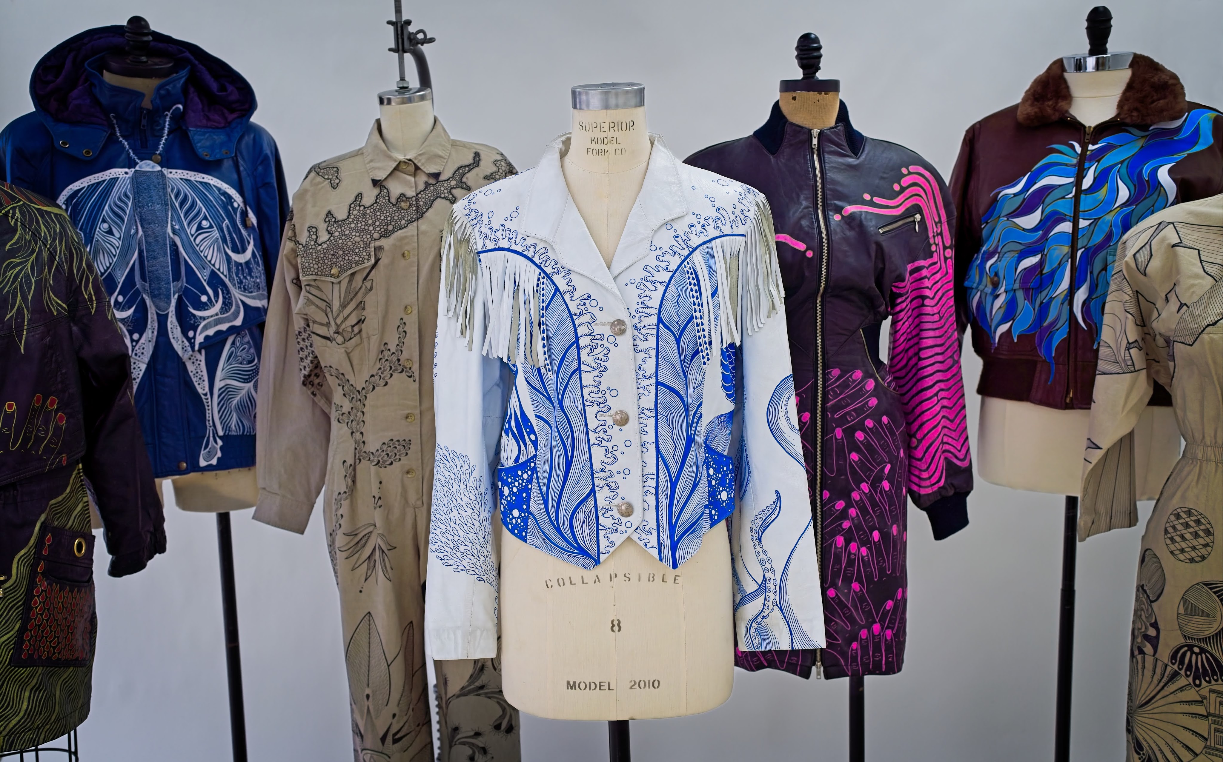 I am a freehand artist, which means that I don’t pre-draw or trace (although I have been known to use a straight edge from time to time). I select choice vintage leather garments, shoes, and accessories as my canvases, thereby breathing new life into old things. The result is a wearable, one-of-one piece of art that can never be duplicated.
