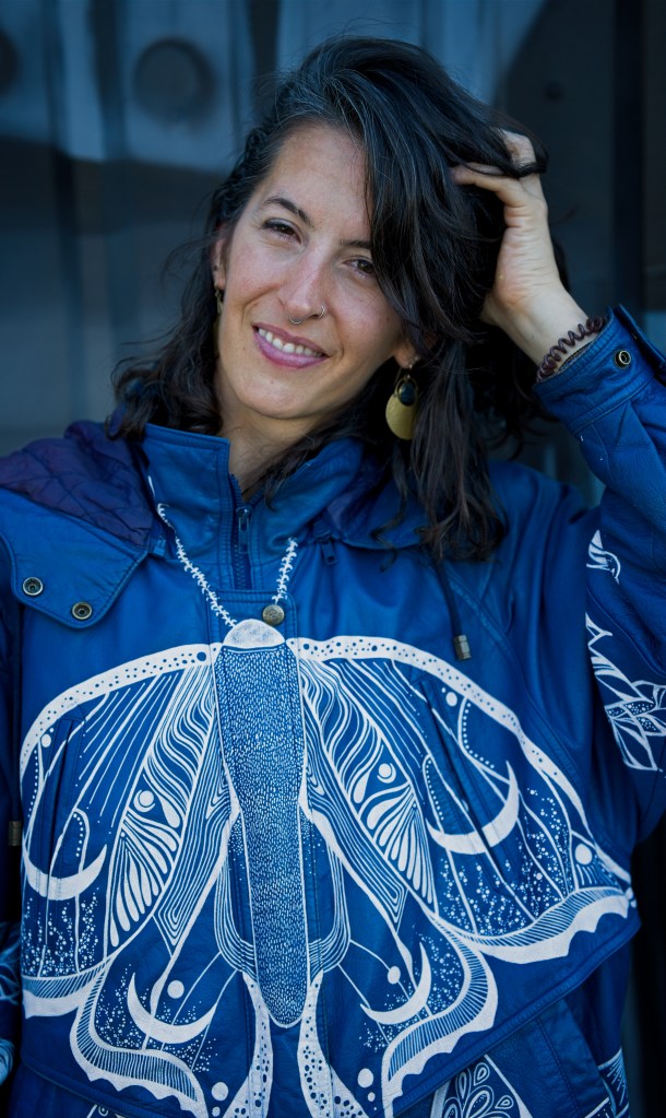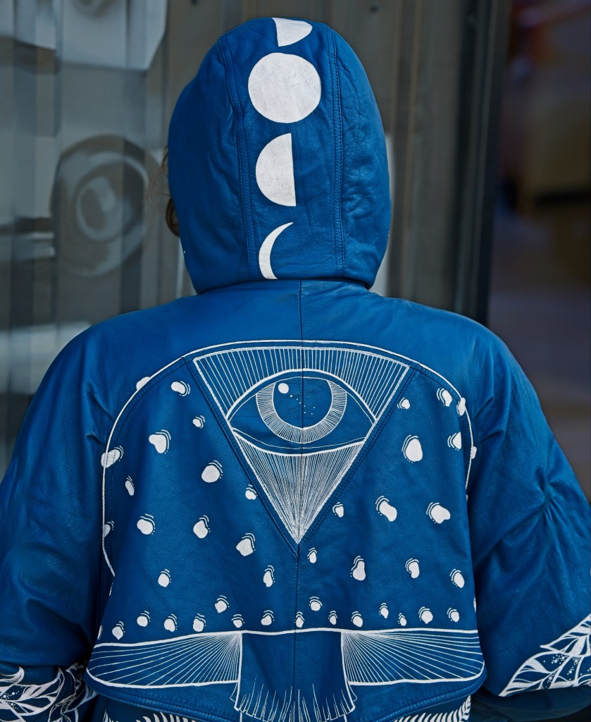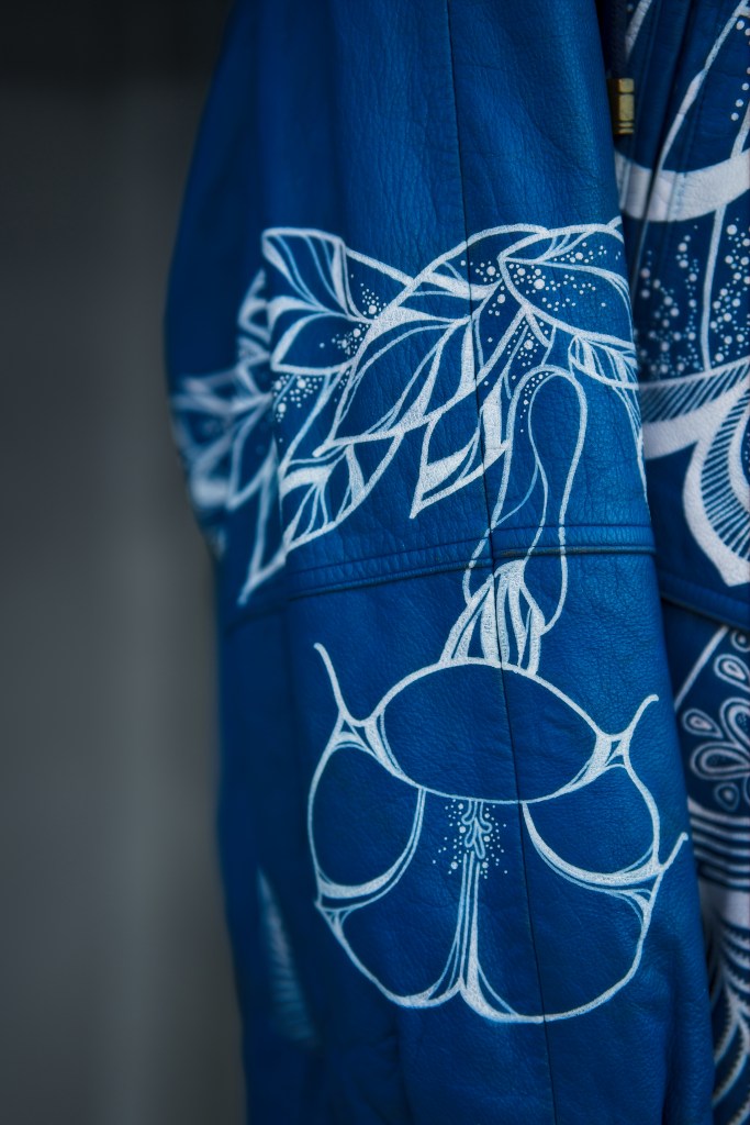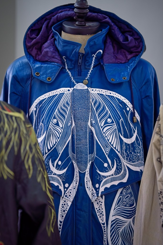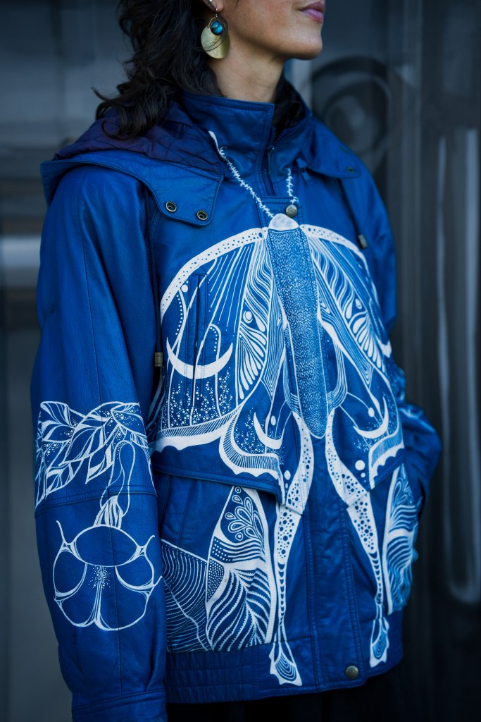 This piece pays homage to the Pacific Northwest and is adorned with a Luna moth on the frontside and Amanita mushroom on the backside. Smaller nods include strawberries, ferns, and the Big Dipper.