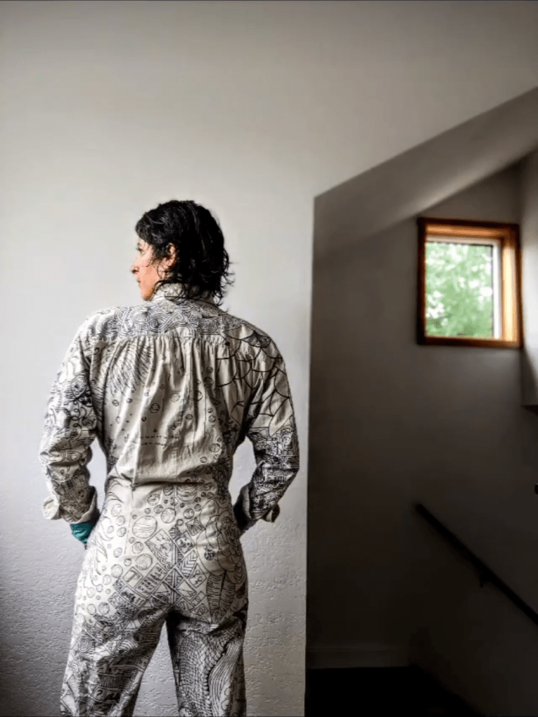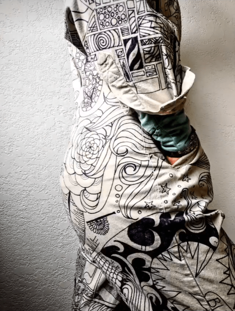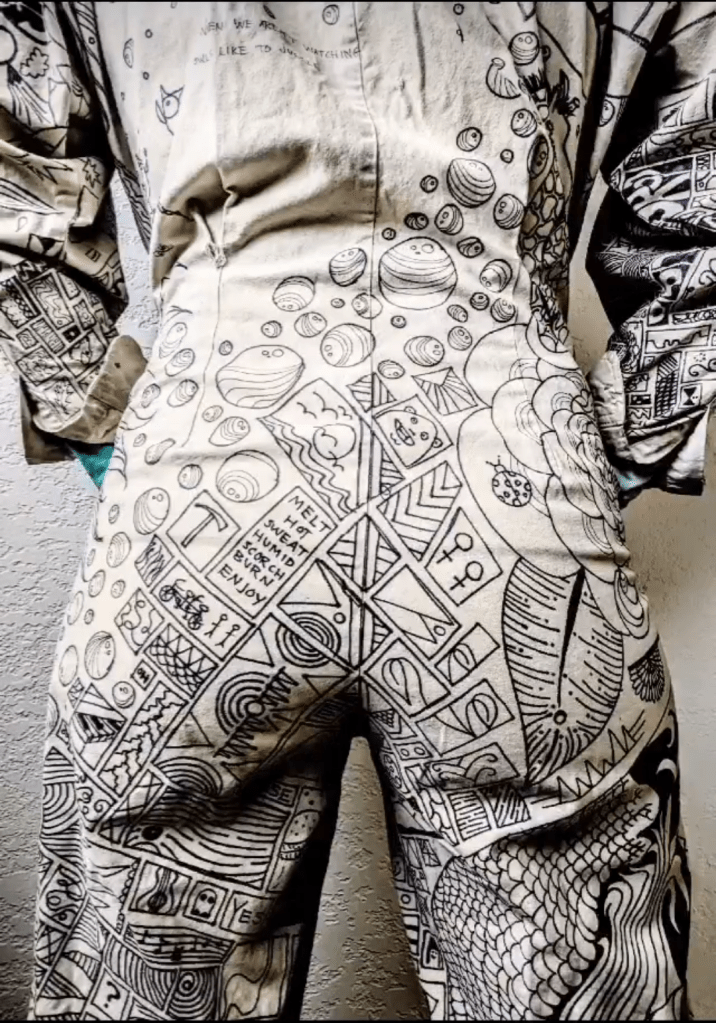 Artwork was drawn on in 2013 using Sharpies. Although sharpies were not used on any other piece, it’s nice to know that this can be washed and worn for over a decade and still look sharp.
