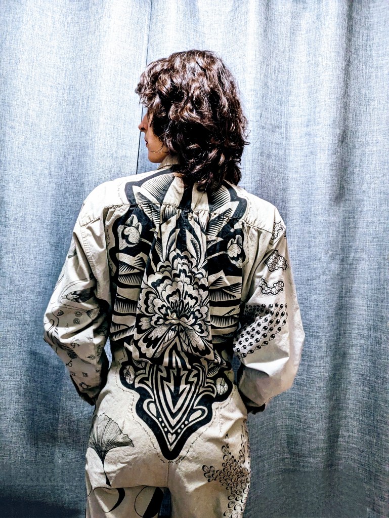 Vintage Banana Republic cotton coverall with pleated waist, breast and hip pockets.