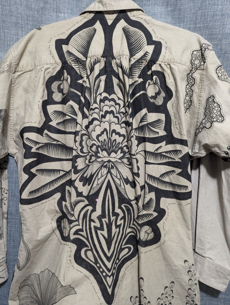 Detailed linework tells a story of deep introspection and our connections to one another as well as to the divine.