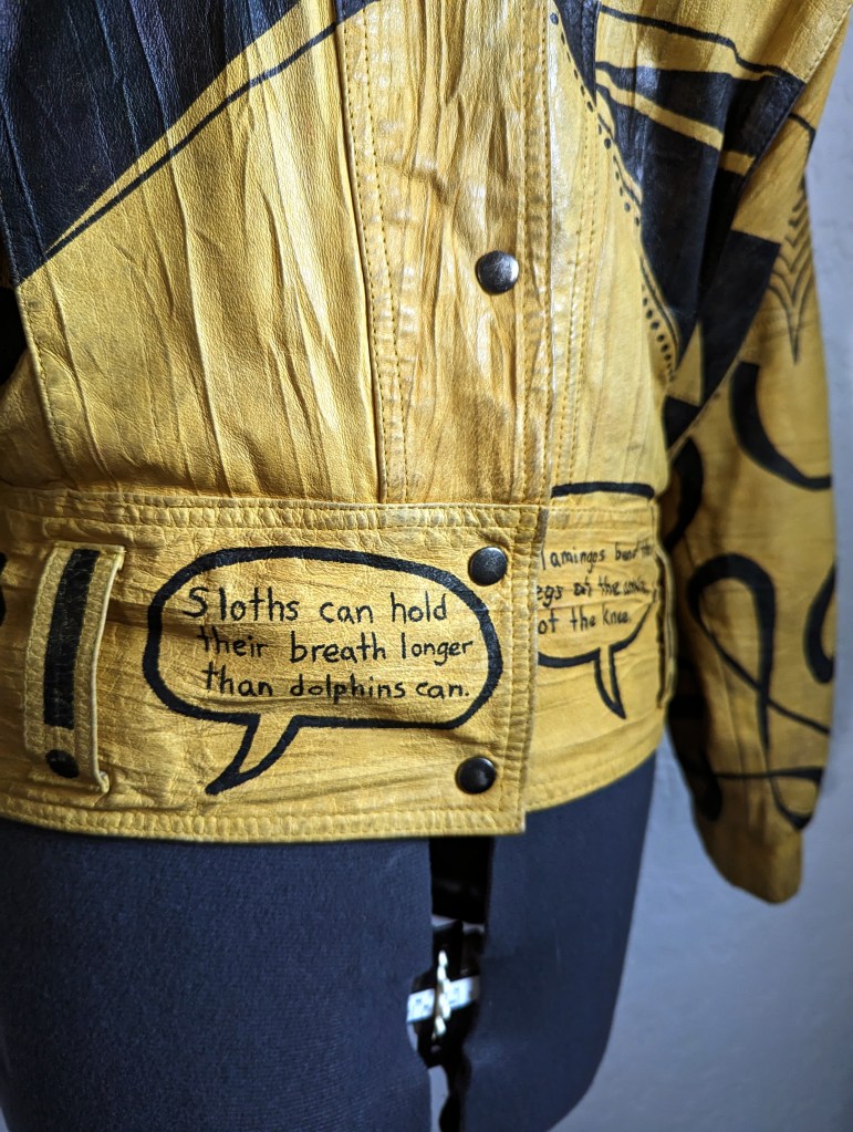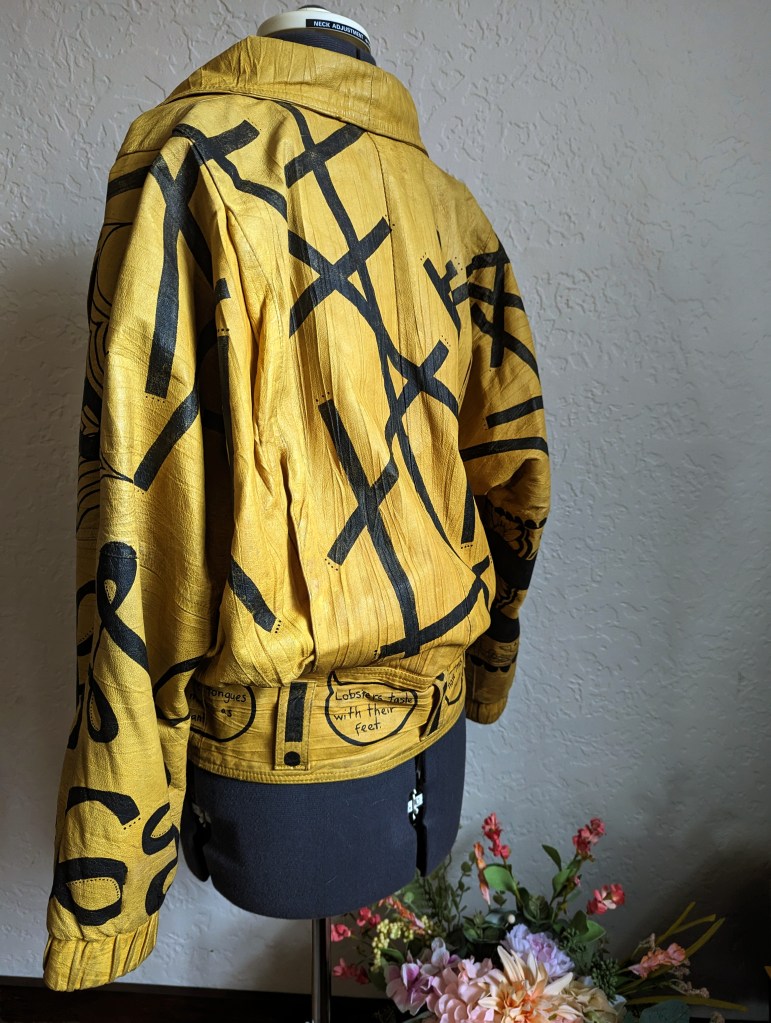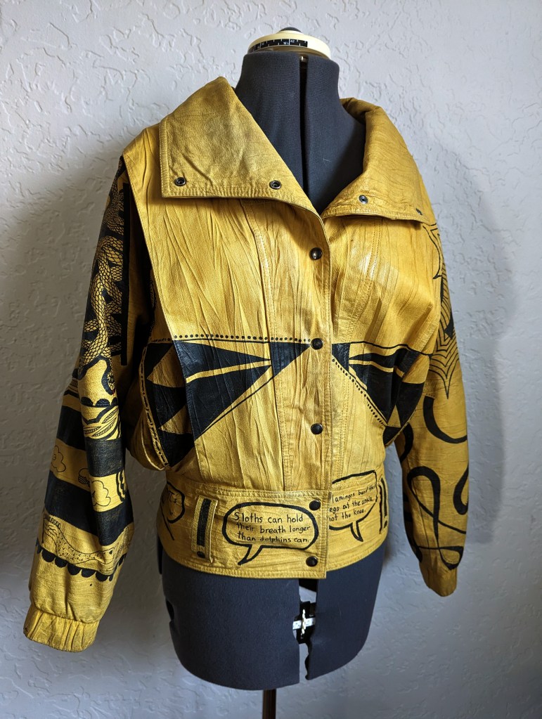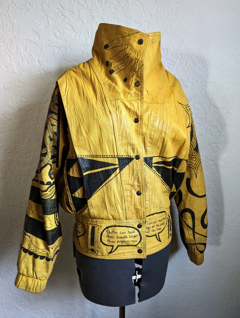 Vintage Berman’s brand yellow leather jacket with oversized collar and batwing sleeves.